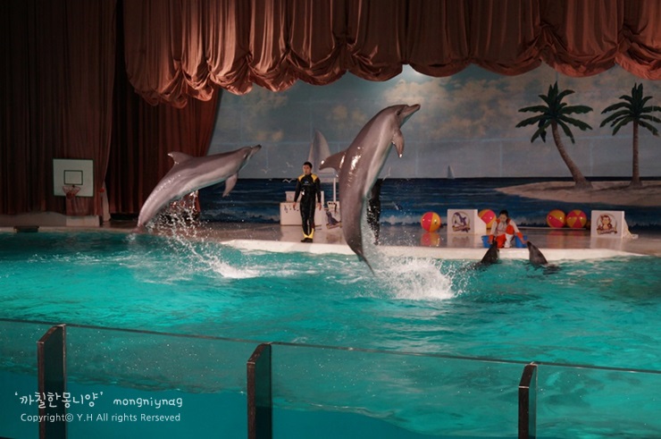 마지막은 돌고래쇼로 마무리가 되는데요~ 역시나 다이나믹하고 스케일이 다른 공연이긴 하더라구요. 다시한번 돌고래들의 어마무시한 점프력에 감탄하지 않을수 없었어요.